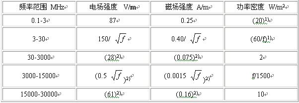2)供對照參考,不作為限值;表中f是頻率,單位為MHz;表中數據作了取整處理。